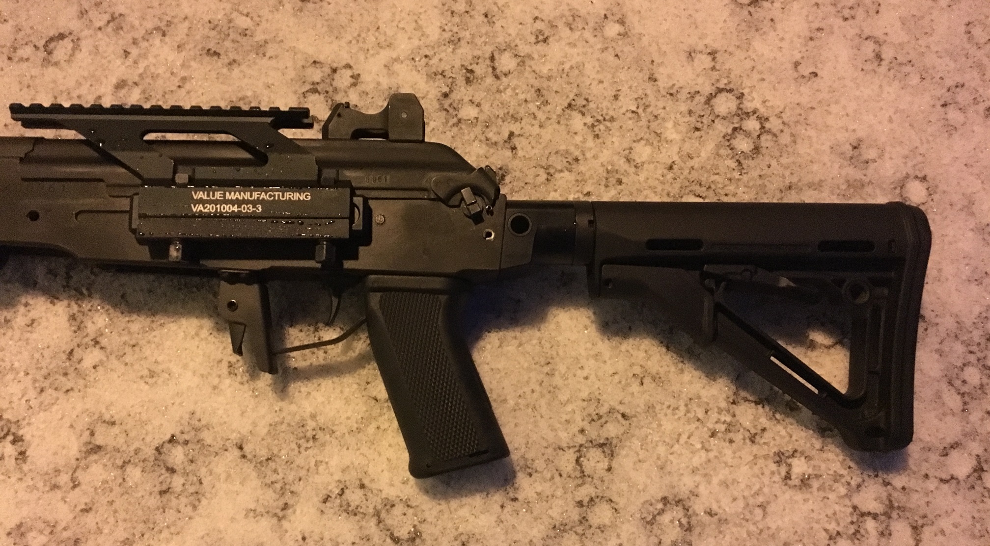 Adapteri on valmistettu anodisoidusta alumiinista ja pikahihnalenkin istukat teräksestä. Adapteri kiinnittyy aseiden tavallisen perän paikalle, siihen käy sekä mil-spec että commercial -tuubi ja milpec-tuubin kanssa Sako M92S:n pituus on 84.1cm. Eli asentaminen ei muuta asetta muu aseeksi.